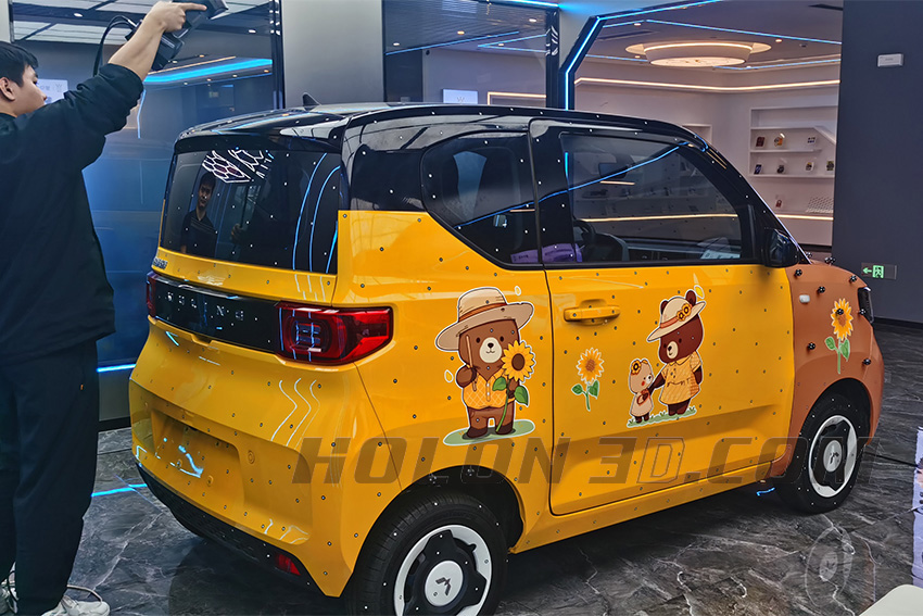 In response to the problems faced, Hualang engineers used the handheld 3D scanner "HOLON B71" to conduct a comprehensive scan of the car's exterior. The scanning speed in the large-scale mode is as high as 2.02 million times/second. The visual scanning can detect and fill in gaps in real time, and the data obtained is complete. Multiple modes can be switched at will, and data of small and complex parts can be easily obtained. The obtained three-dimensional data can be subsequently applied to reverse modeling, reverse design, three-dimensional inspection, etc., providing powerful data support for subsequent product development and inspection, and improving work efficiency. Efficiency and solving customer needs.