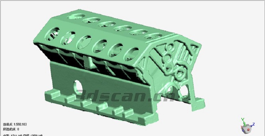 A well-known casting company is a relatively experienced company in the large-scale casting industry. The traditional measurement method for engines is to use three-dimensional coordinates to manually mark lines. The three-dimensional coordinates use a contact measurement method. The measurement efficiency is very low, takes about a week, and the accuracy is not high. About 1.5mm, it has low efficiency and poor effect, and does not adapt to the rapid development trend of the market.