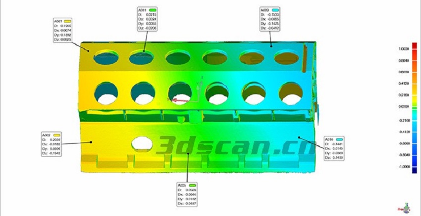 By importing the obtained three-dimensional data of the Mercedes-Benz ship engine into the inspection software, the differences between the Mercedes-Benz turbine blade (CAD) model and the manufactured parts of the product can be quickly detected, and the differences between the two can be displayed with intuitive and easy-to-understand graphical comparison results.