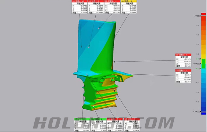 3. Three-dimensional measurement is required in a non-destructive manner for the airfoil cross-sectional area, alignment, blade profile, trailing edge radius and blade root shape, which is a challenge to traditional measurement methods.