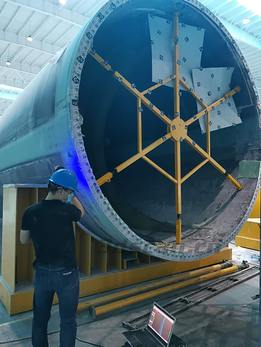 Due to the large size of the blade (about 80 meters long and about 3 meters in diameter), it is difficult to move. Relying on manual traditional measurement methods is inefficient, the accuracy does not meet the requirements, and accurate detection cannot be achieved. Therefore, three-dimensional scanning detection is used.