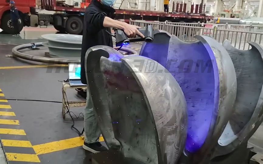 項目組人員決定采用手持三維掃描儀對水輪機水斗進行全方位的缺陷檢測