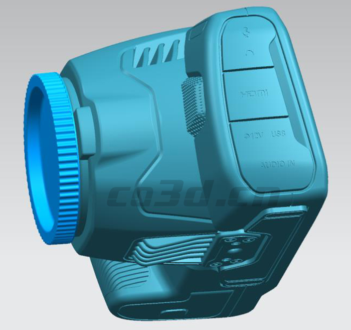 客戶是需要數(shù)據(jù)建模做展示,因此對數(shù)據(jù)精度要求很高,能完整的展現(xiàn)出攝像機(jī)各方面的優(yōu)勢,給用戶體現(xiàn)出真實的感觀。采用最新三維掃描技術(shù)獲取數(shù)據(jù)。以往的掃描設(shè)備,獲取的數(shù)據(jù)精度不高,不適合運(yùn)用到展示上,3D體驗感不好。