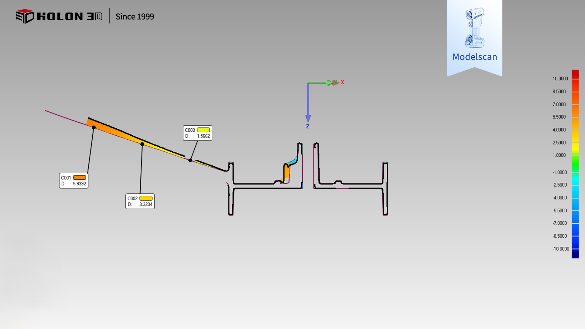 HOLON 3D采用高精度三維掃描儀Model 49,3分鐘內(nèi)完成葉片全尺寸0.02mm精度建模,精準(zhǔn)捕獲彎扭氣動曲面及微米級缺陷?;趻呙钄?shù)據(jù)生成質(zhì)量分布云圖,通過軟件對比分析實現(xiàn)動態(tài)平衡,使得設(shè)備壽命延長2倍。幫助客戶通過智能優(yōu)化氣動布局與材料分布,降低能耗與振動,同步實現(xiàn)減重增效,助力客戶突破性能與成本瓶頸。
