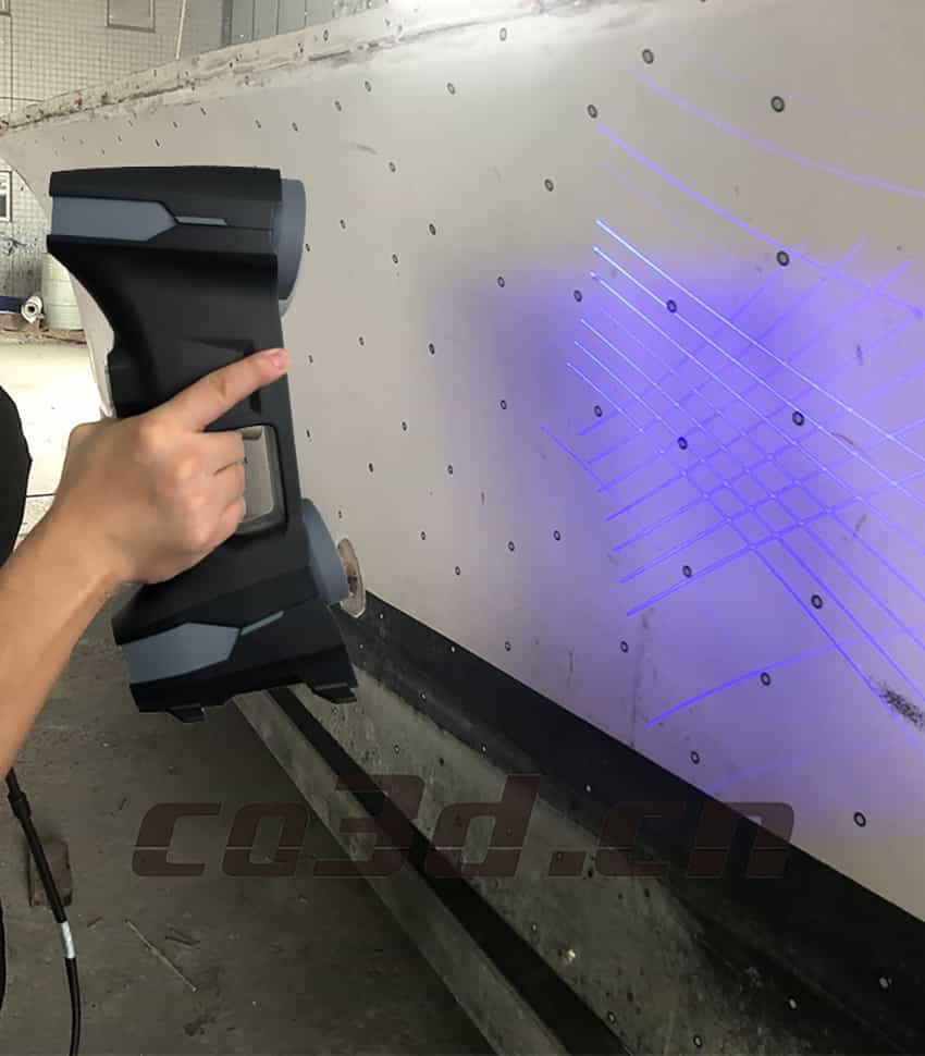根據(jù)客戶需求及工件情況華朗技術(shù)工程師迅速給出解決方案:使用手持三維掃描儀Model 37+三維攝影測量系統(tǒng)HL-3DP快速進(jìn)行三維掃描,能夠在短時間內(nèi)獲取游艇船艙高精度的三維數(shù)據(jù),有效解決傳統(tǒng)測量耗時長、測量累計(jì)誤差大等問題,客戶對我們設(shè)備掃描效果及結(jié)果非常滿意。