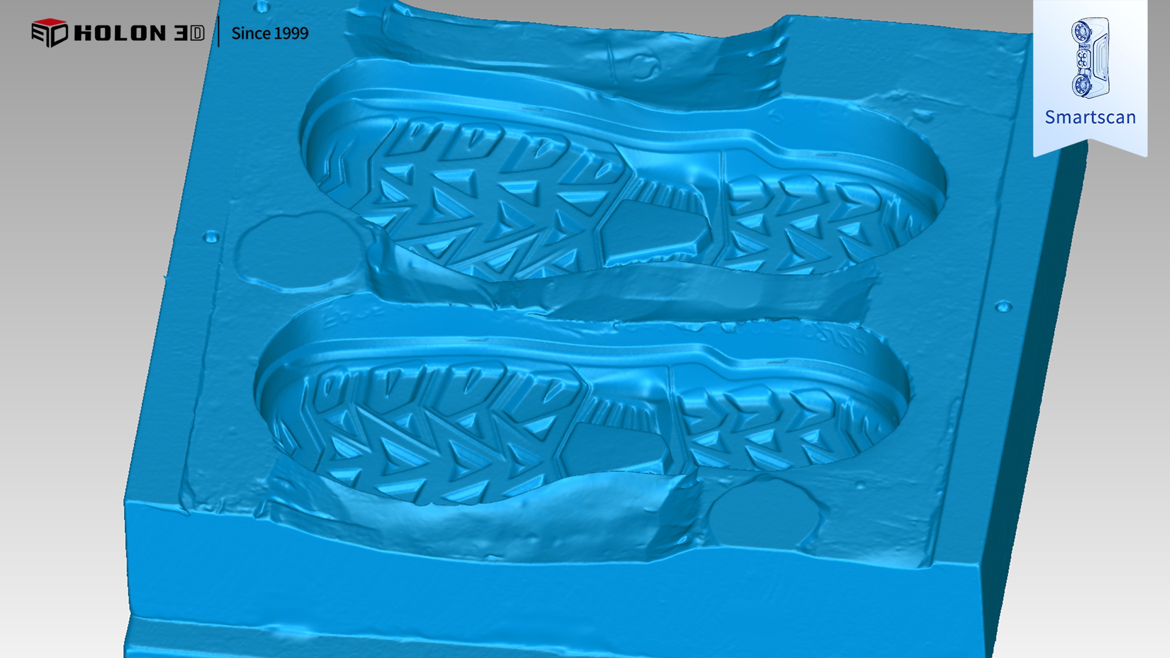 鞋子紋理較復(fù)雜且精度有較高要求,由于傳統(tǒng)的測量方法,所獲取的數(shù)據(jù)有限且不能精準(zhǔn)地測量模具曲面及近似垂直面的三維數(shù)據(jù),華朗三維技術(shù)工程師提出解決方案:使用 smart49 手持式三維掃描儀快速掃描獲取模具的三維數(shù)據(jù),掃描精度高、速度快、操作方便且耗時短,達(dá)到客戶掃描需求,成功解決客戶難題。