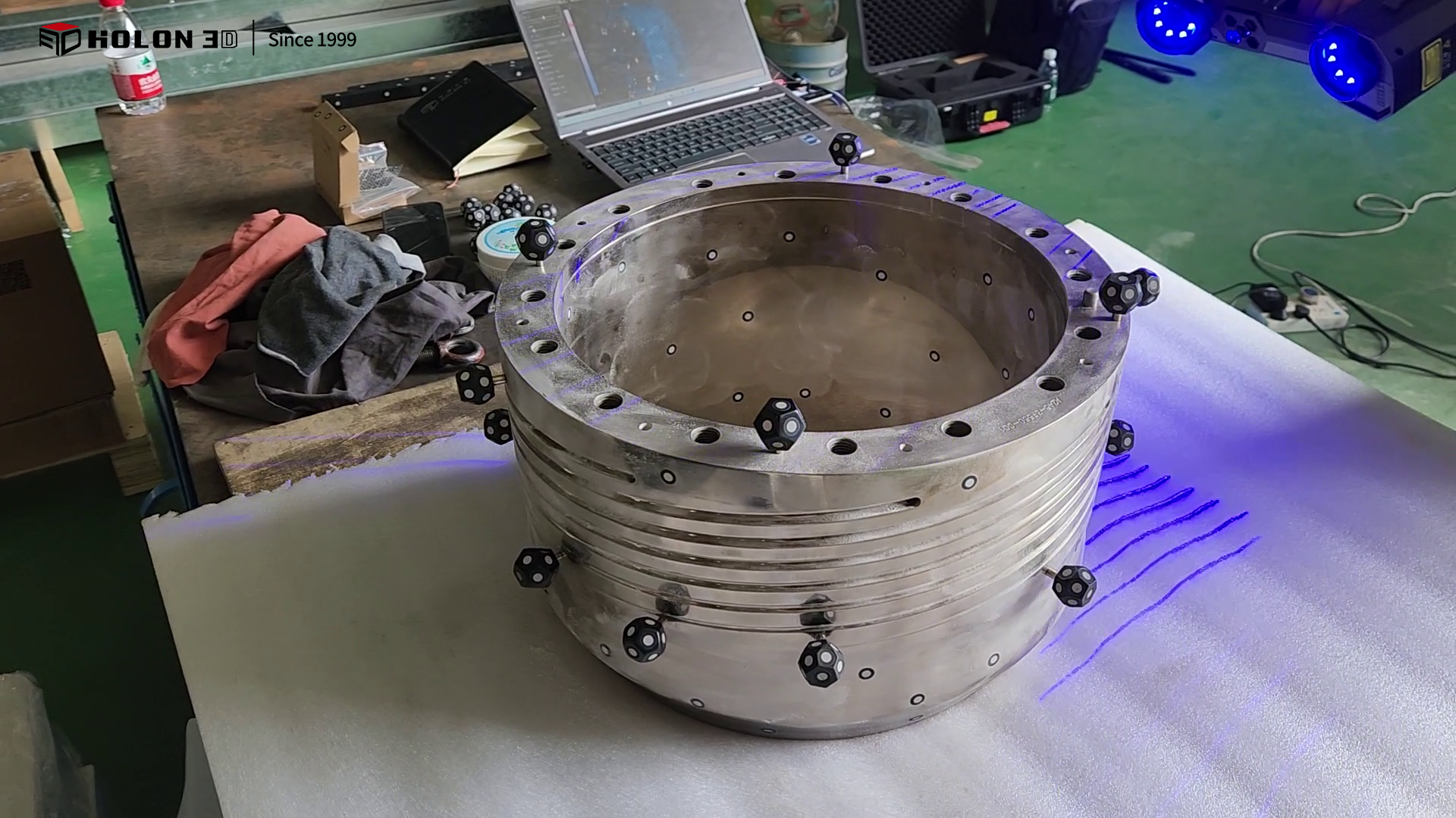 電鍍機(jī)械零配件作為工業(yè)設(shè)備中的精密組件,其結(jié)構(gòu)完整性與尺寸精度直接影響設(shè)備的裝配性能與運(yùn)行效率??蛻粜鑼?duì)這幾個(gè)零配件進(jìn)行三維數(shù)據(jù)采集,通過三維重建實(shí)現(xiàn)逆向建模,為產(chǎn)品的設(shè)計(jì)優(yōu)化、備件復(fù)刻等工作提供基礎(chǔ)。由于零配件表面電鍍后存在強(qiáng)反光,且包含豐富的特征、孔位及流道,同時(shí)客戶對(duì)掃描精度有較高要求,傳統(tǒng)測(cè)量方式難以滿足需求,因此選擇 HOLON 3D model 49 手持式全藍(lán)激光三維掃描儀,為零配件的數(shù)字化建模提供精準(zhǔn)數(shù)據(jù)支撐。