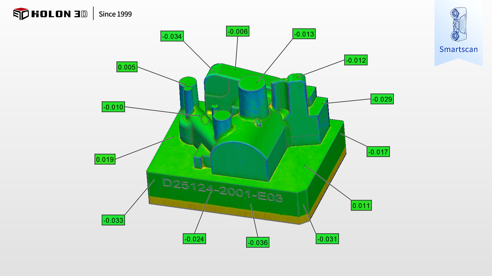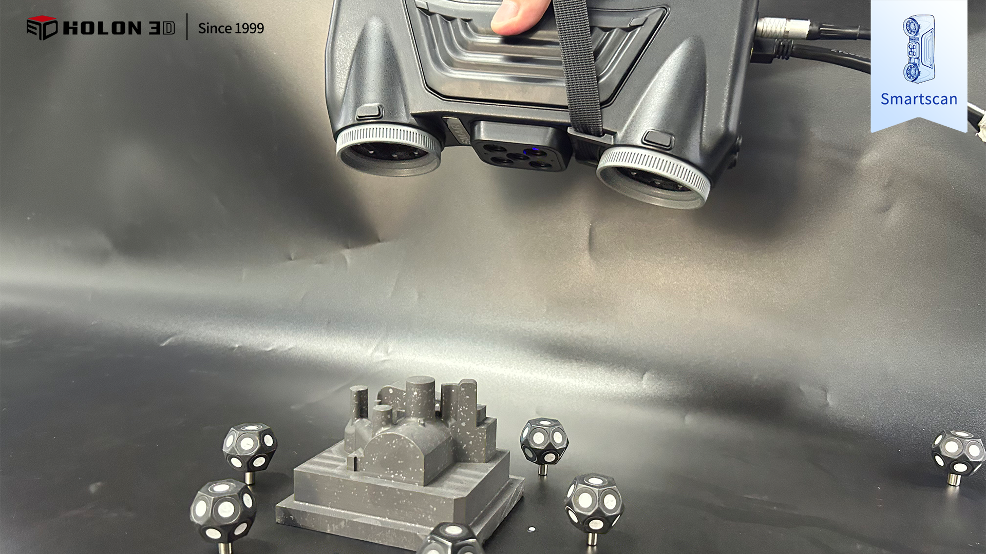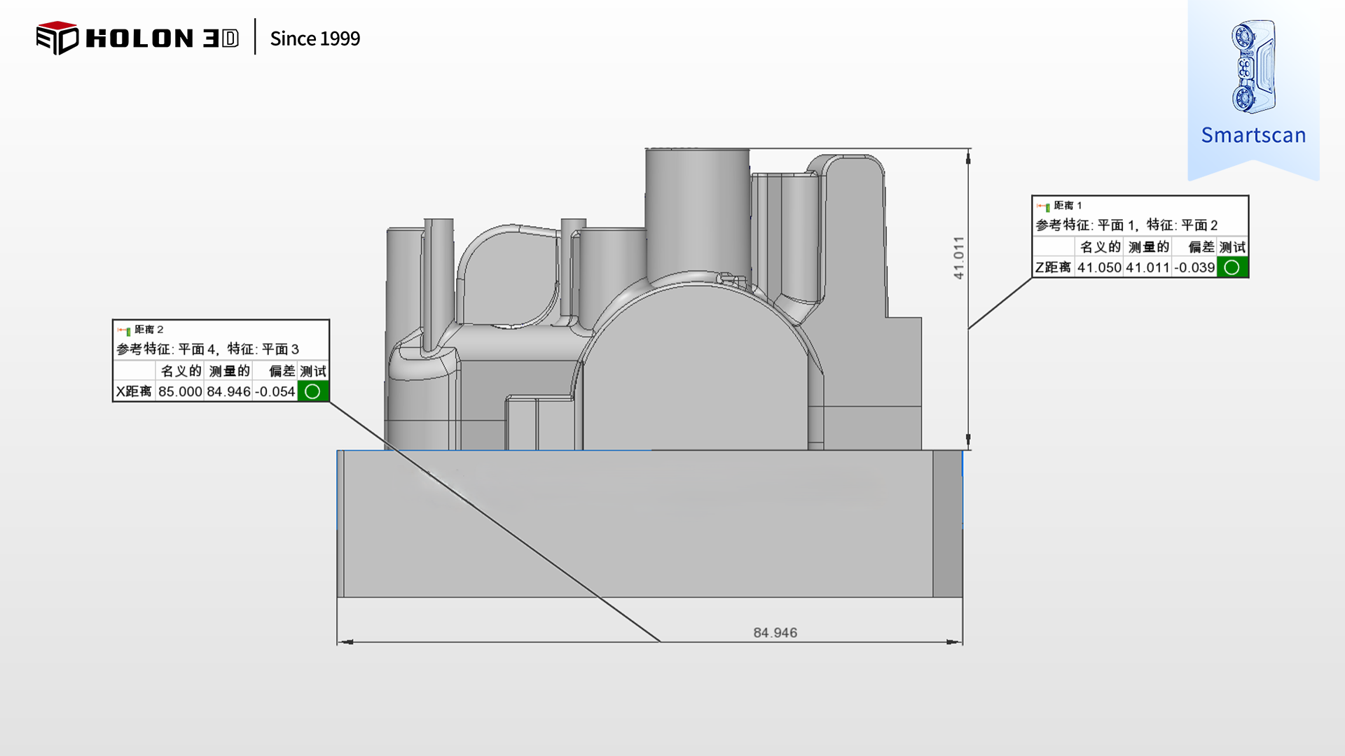 采用 HOLON3D Smart 49 掃描儀可針對(duì)性破解難題,其具備工業(yè)計(jì)量級(jí)精度,搭配全藍(lán)激光技術(shù),無(wú)需特殊預(yù)處理即可適配石墨吸光材質(zhì),精準(zhǔn)捕捉胚體輪廓、型腔細(xì)節(jié)等關(guān)鍵數(shù)據(jù);搭載四種掃描模式,可根據(jù)胚體整體輪廓、型腔內(nèi)部等不同特征靈活切換,配合手持設(shè)計(jì)自由調(diào)整角度,實(shí)現(xiàn)全區(qū)域無(wú)死角掃描;高速無(wú)接觸測(cè)量避免石墨材質(zhì)破損,不受場(chǎng)景約束,僅需粘貼少量標(biāo)志點(diǎn)即可穩(wěn)定輸出高質(zhì)量數(shù)據(jù),掃描數(shù)據(jù)與原始模型比對(duì)生成清晰色譜圖,準(zhǔn)確量化誤差,科學(xué)判定合格性,完全契合客戶需求,為胚體質(zhì)量管控與后續(xù)加工優(yōu)化提供可靠支撐。