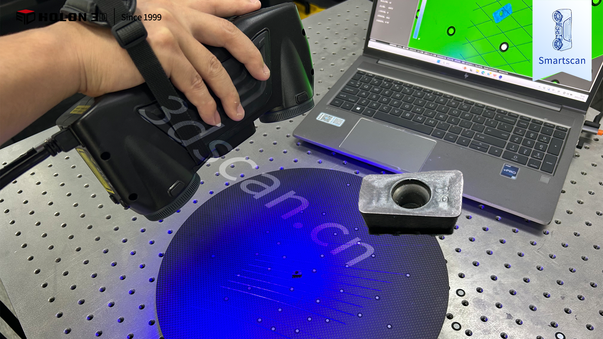 數(shù)控銑刀片是精密加工的核心刀具,客戶需通過三維掃描獲取其完整高精度數(shù)據(jù),經(jīng)逆向建模生成生產(chǎn)用 CAD 模型。該銑刀片體積微小、表面呈黑色,客戶對掃描完整性與細節(jié)還原要求嚴苛,傳統(tǒng)測量方式難以滿足,故選擇 HOLON3D Smart 49 掃描儀提供數(shù)字化解決方案。