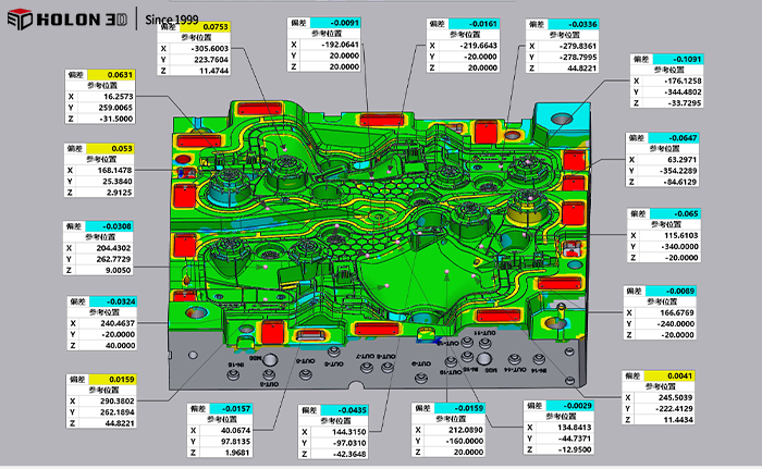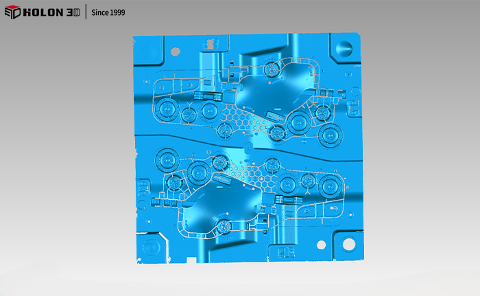 針對(duì)客戶所面臨的問題,華光三維技術(shù)工程師使用手持式三維掃描儀HOLON 771快速精確的獲取了汽車模具三維數(shù)據(jù),且不用噴涂顯像劑掃描方便快捷,整個(gè)掃描過程不到30分鐘,掃描精度極高。成功的解決了客戶所面臨的問題