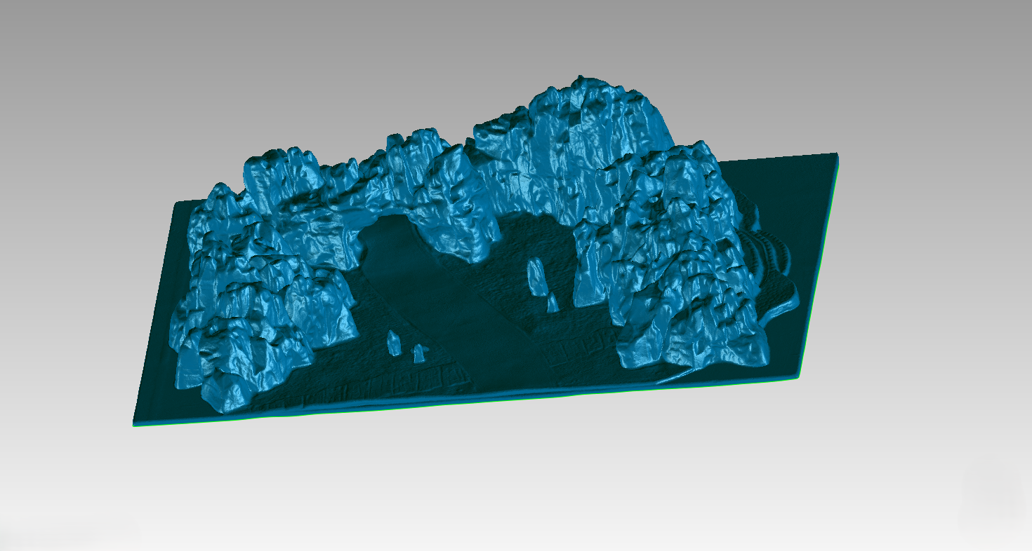 1、假山模型尺寸較小,整體表面復(fù)雜且不規(guī)則(曲面、輪廓較多),假山本身凹凸不平形成的夾角死角較多,使掃描難度大幅度增加。