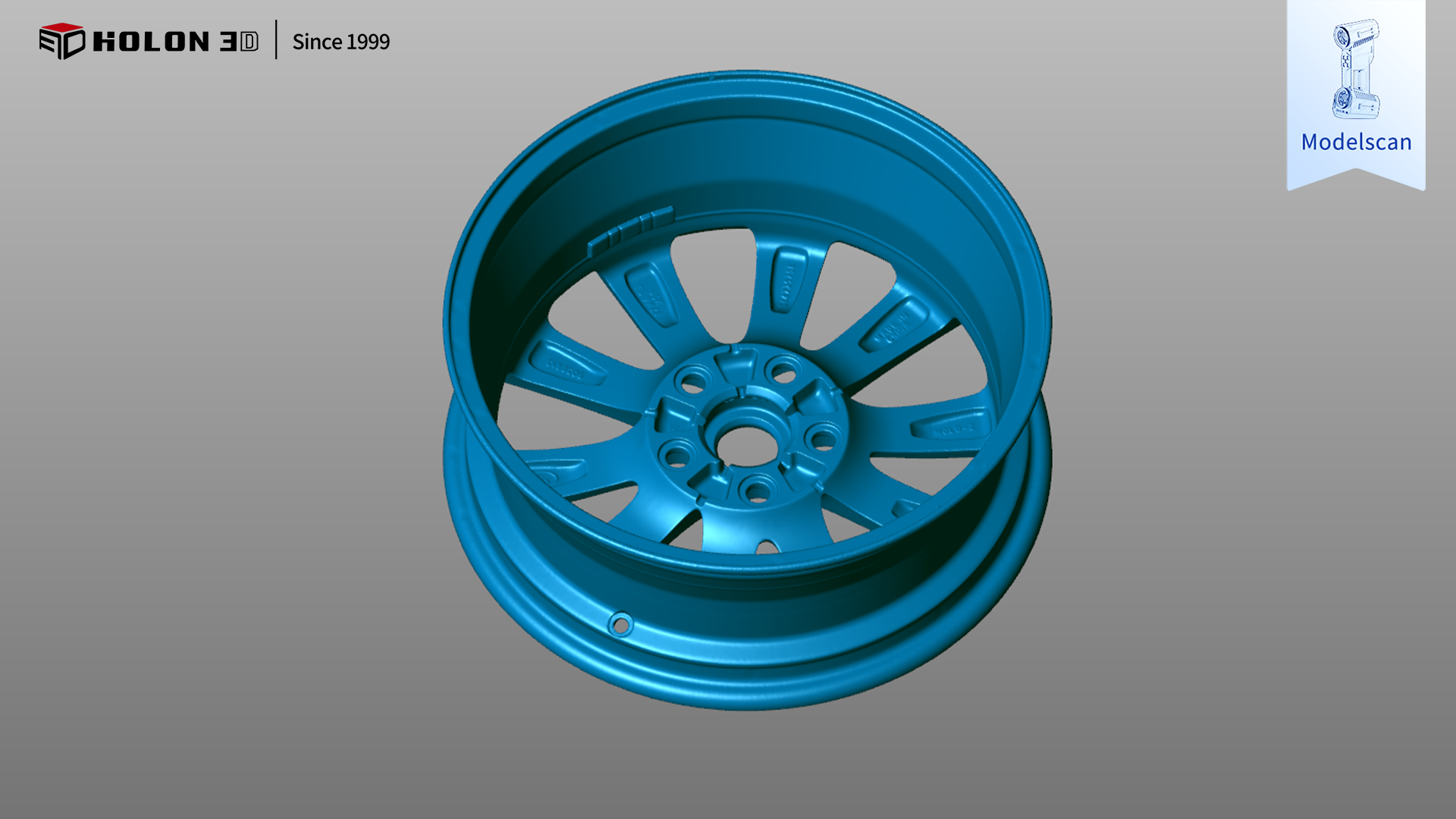 汽車輪轂作為車身核心承載與傳動(dòng)部件,其輪輞尺寸精度、輻條結(jié)構(gòu)完整性及曲面輪廓精度直接決定行車安全性、輪胎適配性與行駛穩(wěn)定性。客戶需對(duì)該汽車輪轂進(jìn)行三維掃描,獲取高精度、完整的三維數(shù)據(jù),通過(guò)與原始模型比對(duì)生成三維檢測(cè)色譜圖,直觀量化輪輞直徑、輻條厚度、安裝孔位公差及曲面弧度等關(guān)鍵部位的誤差分布,以此科學(xué)判斷輪轂是否合格。由于客戶對(duì)掃描精度、數(shù)據(jù)完整性要求極高,且需適配車間抽檢、生產(chǎn)線質(zhì)檢等多樣化檢測(cè)場(chǎng)景,傳統(tǒng)測(cè)量方式難以滿足需求,因此選擇具備工業(yè)計(jì)量級(jí)精度的 HOLON3D Model 49 手持式全藍(lán)激光工業(yè)級(jí)三維掃描儀,為汽車輪轂的精準(zhǔn)質(zhì)量檢測(cè)提供高效可靠的數(shù)字化支撐。