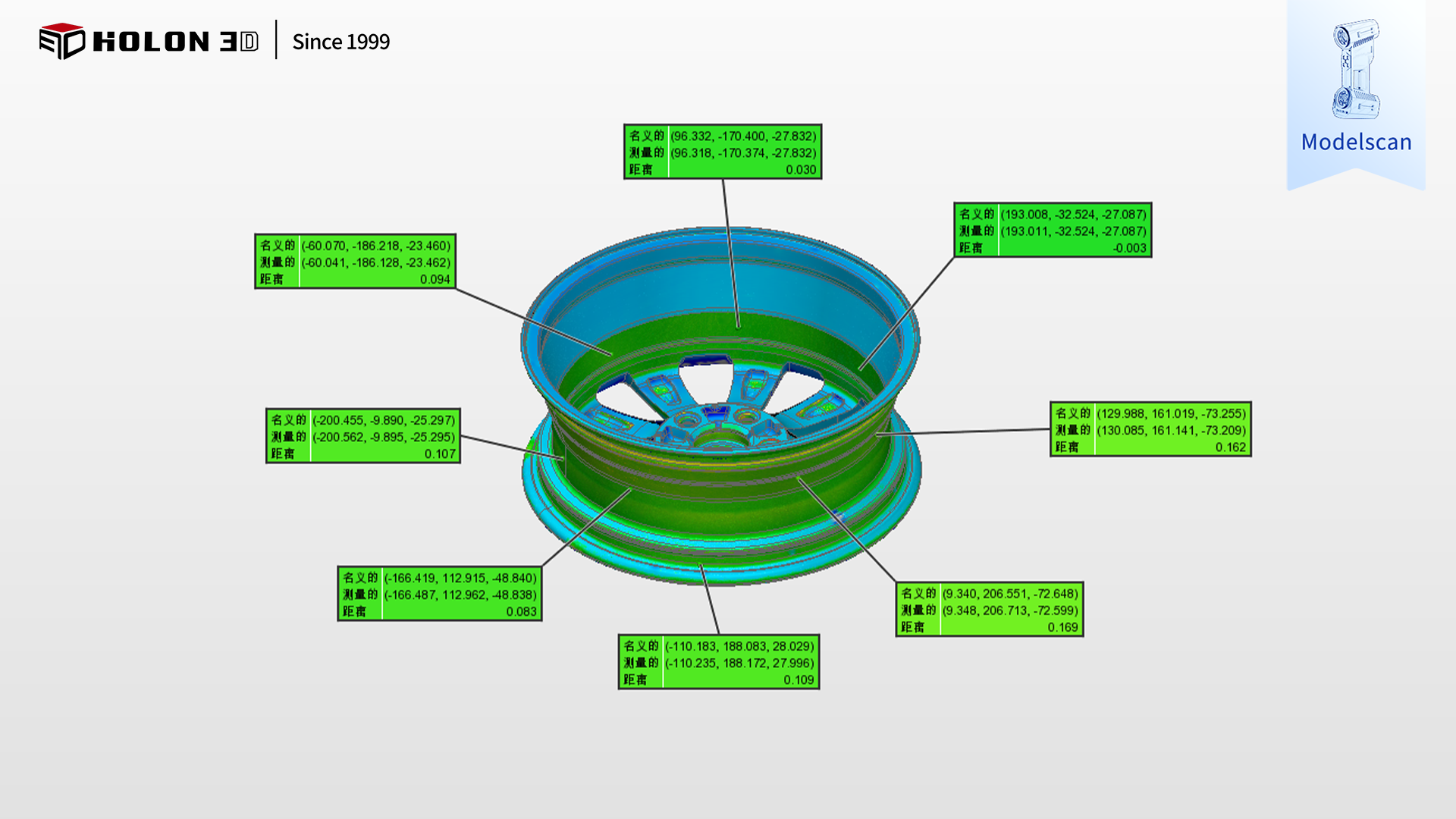 采用 HOLON3D Model 49 手持式全藍(lán)激光工業(yè)級(jí)三維掃描儀,可針對(duì)性破解汽車輪轂檢測(cè)的核心難題。該掃描儀具備工業(yè)計(jì)量級(jí)精度,實(shí)測(cè)精度達(dá) 0.02mm,最高可達(dá) 0.01mm,憑借全藍(lán)激光技術(shù)的高穿透性與識(shí)別力,無(wú)需依賴反光輔助,即可精準(zhǔn)捕捉輪轂的輪輞直徑、輻條厚度、安裝孔位尺寸、曲面弧度及邊緣輪廓等關(guān)鍵細(xì)節(jié),甚至可識(shí)別微米級(jí)誤差,獲取全表面高精度三維數(shù)據(jù),為生成精準(zhǔn)三維檢測(cè)色譜圖奠定堅(jiān)實(shí)基礎(chǔ),確保誤差量化無(wú)偏差;手持設(shè)計(jì)靈活便捷,不受輪轂環(huán)形結(jié)構(gòu)與隱蔽區(qū)域限制,可自由圍繞輪轂調(diào)整掃描角度,輕松深入輪輞內(nèi)壁、輻條間隙等不易觸及的部位,保障數(shù)據(jù)完整性,讓色譜圖全面呈現(xiàn)整體誤差分布;高速掃描能力大幅縮短復(fù)雜輪轂的數(shù)據(jù)采集時(shí)間,配合無(wú)接觸式測(cè)量方式,既避免了刮傷表面工藝與受力變形的風(fēng)險(xiǎn),又能快速獲取可靠數(shù)據(jù),高效支撐合格性判定;掃描儀適應(yīng)性強(qiáng),不受場(chǎng)景約束,在車間生產(chǎn)線、倉(cāng)儲(chǔ)質(zhì)檢區(qū)等復(fù)雜環(huán)境下無(wú)需復(fù)雜前期準(zhǔn)備(如表面噴粉、貼標(biāo)記點(diǎn)),即可穩(wěn)定輸出高質(zhì)量數(shù)據(jù)。掃描后生成的三維數(shù)據(jù)精準(zhǔn)、完整,與原始模型比對(duì)可清晰生成三維檢測(cè)色譜圖,能準(zhǔn)確量化輪輞圓度、輻條對(duì)稱度等關(guān)鍵指標(biāo)的誤差,科學(xué)判斷輪轂合格性,完全符合客戶對(duì)高精度與完整性的嚴(yán)苛需求,為汽車輪轂的質(zhì)量管控、工藝優(yōu)化及批量生產(chǎn)提供了可靠的數(shù)字化保障。
