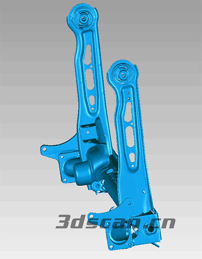 2、汽車懸架系統(tǒng)外形復(fù)雜且不規(guī)則,曲面輪廓較多,客戶需對汽車懸架系統(tǒng)的孔位進(jìn)行精確測量,傳統(tǒng)三維掃描儀難以快速、準(zhǔn)確獲取高精度的三維數(shù)字模型。