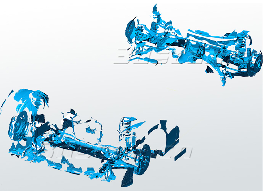 懸掛系統(tǒng)是整輛車中最難掃描的部位之一,其結(jié)構(gòu)復(fù)雜,零部件精細(xì),死角多。