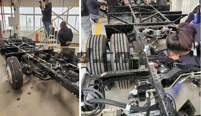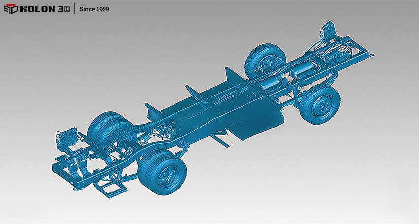 車(chē)架由各種縱向和橫向鋼梁組成的長(zhǎng)方形構(gòu)架,是車(chē)體的基礎(chǔ)。車(chē)架必須具有足夠的強(qiáng)度和剛度儀承受汽車(chē)的載荷和車(chē)輪傳來(lái)的沖擊。車(chē)架結(jié)構(gòu)形式應(yīng)滿(mǎn)足汽車(chē)總布置,這樣在行駛過(guò)程中避免各部件之間影響工作正常運(yùn)行,提高汽車(chē)的行駛穩(wěn)定性。需要對(duì)車(chē)架的各方面數(shù)據(jù)做個(gè)了解,在設(shè)計(jì)生產(chǎn)上可更好的匹配,這就用到三維掃描技術(shù)來(lái)獲取精準(zhǔn)的數(shù)據(jù)。