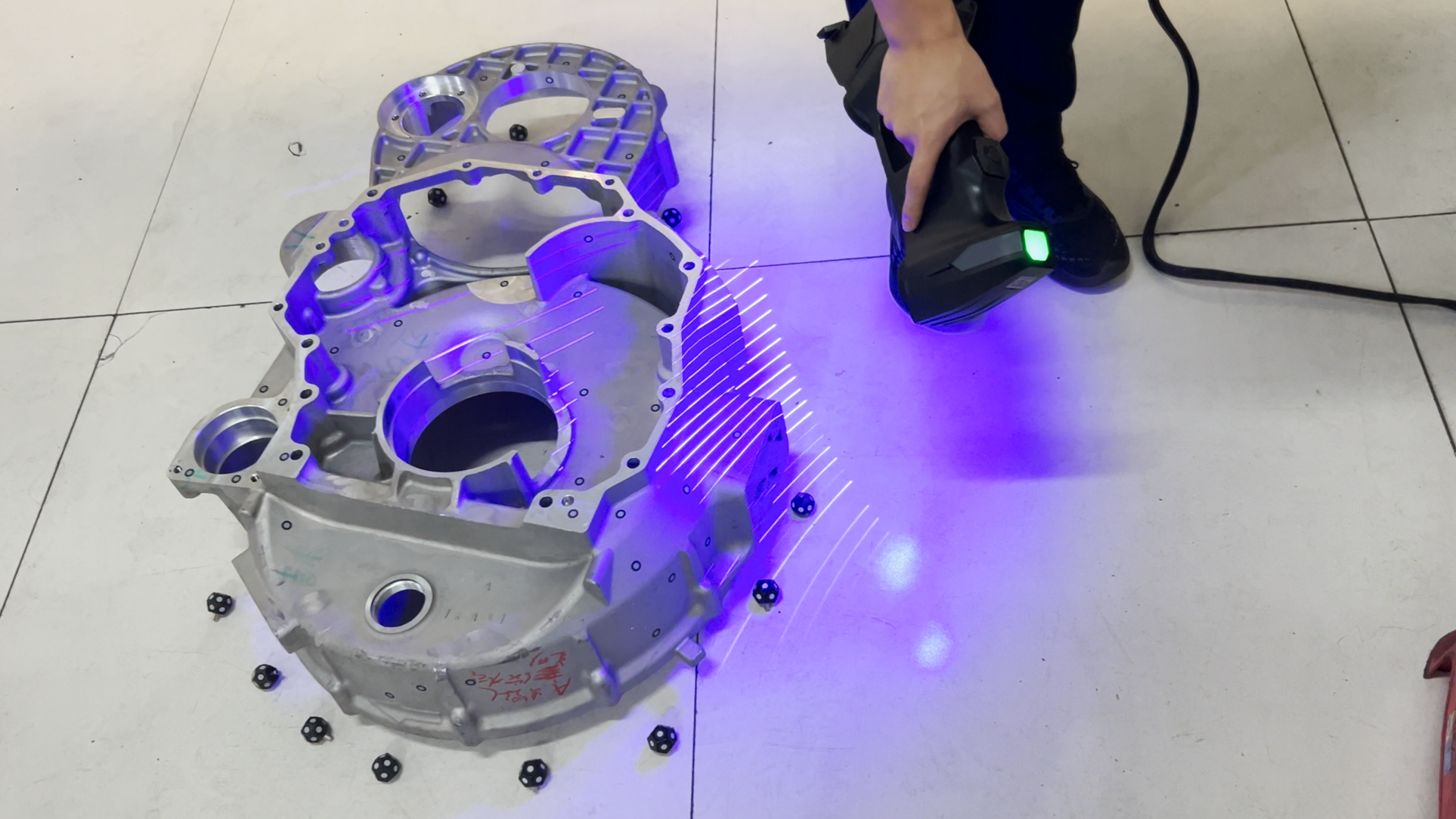 華朗三維工程師提供了三維掃描技術(shù)的解決方案,使用手持式三維掃描儀,能夠以非接觸的方式快速獲取飛輪表面的三維數(shù)據(jù),包括形狀、尺寸、表面缺陷等關(guān)鍵信息。這種高精度的測(cè)量能力確保了檢測(cè)結(jié)果的準(zhǔn)確性,避免了傳統(tǒng)檢測(cè)方法中可能因接觸而產(chǎn)生的誤差。同時(shí),三維掃描技術(shù)能夠全面覆蓋飛輪的所有表面,包括難以觸及的隱蔽部位,從而實(shí)現(xiàn)了對(duì)飛輪的全面檢測(cè)。