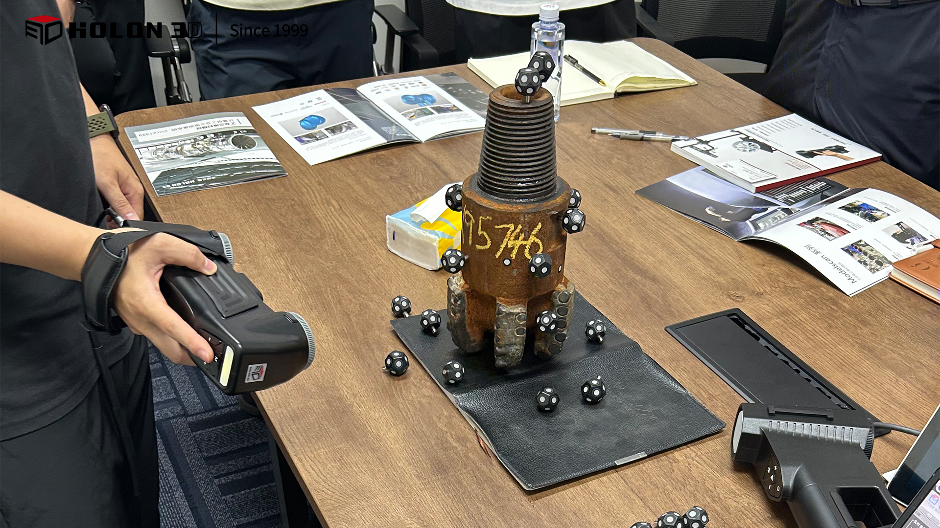 石油鉆頭表面布滿切削齒、流道等復(fù)雜結(jié)構(gòu),傳統(tǒng)測量工具不僅難以完整捕捉輪廓細(xì)節(jié),且人工逐點(diǎn)測量效率極低,無法適應(yīng)海上作業(yè) “搶時(shí)效” 的需求;海上作業(yè)現(xiàn)場存在顛簸、濕度大、光線不穩(wěn)定等問題,傳統(tǒng)測量易受環(huán)境干擾,導(dǎo)致數(shù)據(jù)精度波動(dòng),難以滿足磨損比對的量化要求;此外,一般鉆頭體積較大且表面堅(jiān)硬,接觸式測量可能造成二次損傷,同時(shí)無法快速生成可直接用于比對的數(shù)字化數(shù)據(jù),嚴(yán)重影響磨損評估的及時(shí)性與準(zhǔn)確性。