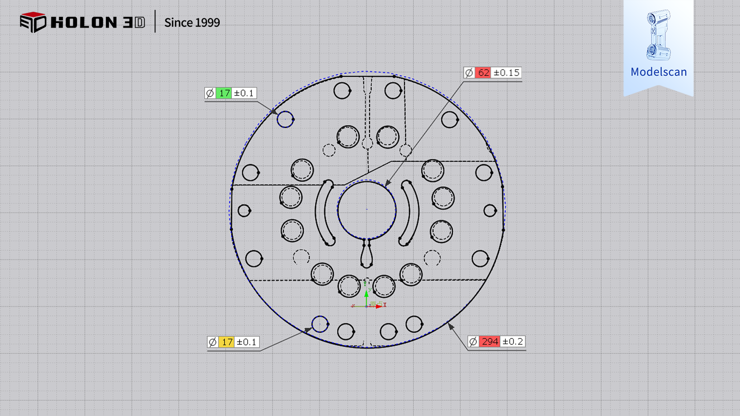 Holon3D采用Model 49全藍(lán)光掃描儀,通過可調(diào)激光亮度穿透黑色表面反射干擾,智能抑制金屬反光噪點(diǎn)。0.02mm超高精度配合420萬點(diǎn)/秒掃描速度,結(jié)合深孔模式與精密模式,完整獲取螺紋牙型、深孔底徑等關(guān)鍵數(shù)據(jù),快速完成全尺寸逆向建模,數(shù)據(jù)可直接用于逆向設(shè)計(jì)開發(fā)。