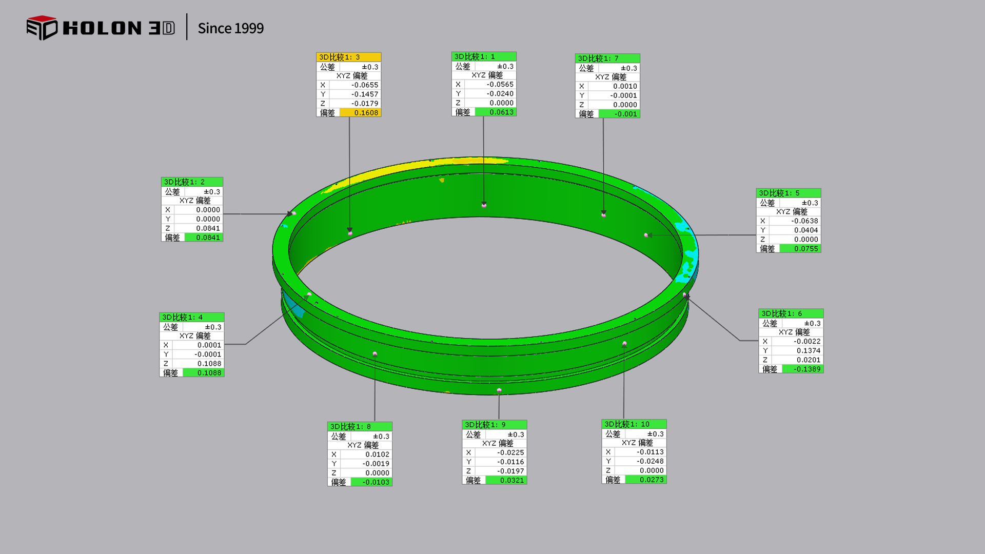 采用 HOLON 3D Smart 49 手持式全藍激光工業(yè)級三維掃描儀,針對性破解圓形工件掃描檢測的核心難題。該掃描儀搭載全藍激光技術(shù),具備超高掃描精度,能精準捕捉圓形工件表面的細微形態(tài)變化,清晰還原工件表面特征,為生成精準三維檢測色譜圖提供可靠數(shù)據(jù)基礎(chǔ);手持設(shè)計靈活便捷,不受 1.3 米大尺寸限制,可圍繞工件自由移動掃描,全面覆蓋工件全表面,無測量盲區(qū),保障數(shù)據(jù)完整性,確保色譜圖能完整呈現(xiàn)誤差分布;高速掃描能力大幅縮短數(shù)據(jù)采集時間,配合無接觸式測量方式,既避免了對工件表面的損傷,又能快速獲取全表面三維數(shù)據(jù),高效支撐合格性判定工作;掃描儀適應(yīng)性強,不受場景約束,在車間、倉庫等復(fù)雜環(huán)境下均能穩(wěn)定輸出高質(zhì)量數(shù)據(jù),無需復(fù)雜前期準備。掃描后生成的三維數(shù)據(jù)精準、完整,與原始模型比對可清晰生成三維檢測色譜圖,能準確量化誤差以判斷工件合格性,完全符合客戶需求,為圓形工件的質(zhì)量管控與生產(chǎn)工藝優(yōu)化提供了高效且可靠的數(shù)字化保障。