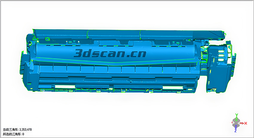 1、首先利用三維掃描儀HL-3DS對(duì)空調(diào)外殼實(shí)物進(jìn)行掃描,獲得高精度、高精確度的點(diǎn)云資料。