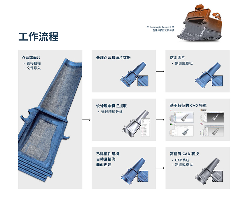 不再以空白的屏幕為起點(diǎn),而是從現(xiàn)實(shí)世界所創(chuàng)造的數(shù)據(jù)入手。Geomagic Design X是一種非常簡(jiǎn)捷的方法,您可以通過(guò)它從 3D 掃描儀中創(chuàng)建可編輯的、基于特征的 CAD 模型并將其整合到現(xiàn)有的工程設(shè)計(jì)工作流程中。