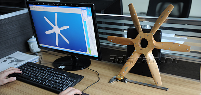 某高端玩具飛機設計公司為設計飛機螺旋槳模型,要考慮到其后期飛行速度與發(fā)動機傳出來的功率,設計過程中要考慮直徑、槳葉數(shù)目、實度、槳葉角、螺距等因素,由于人員設計時間較長,該企業(yè)希望使用三維掃描儀掃描飛機螺旋槳的三維數(shù)據(jù),進行逆向設計,可加快工作效率。