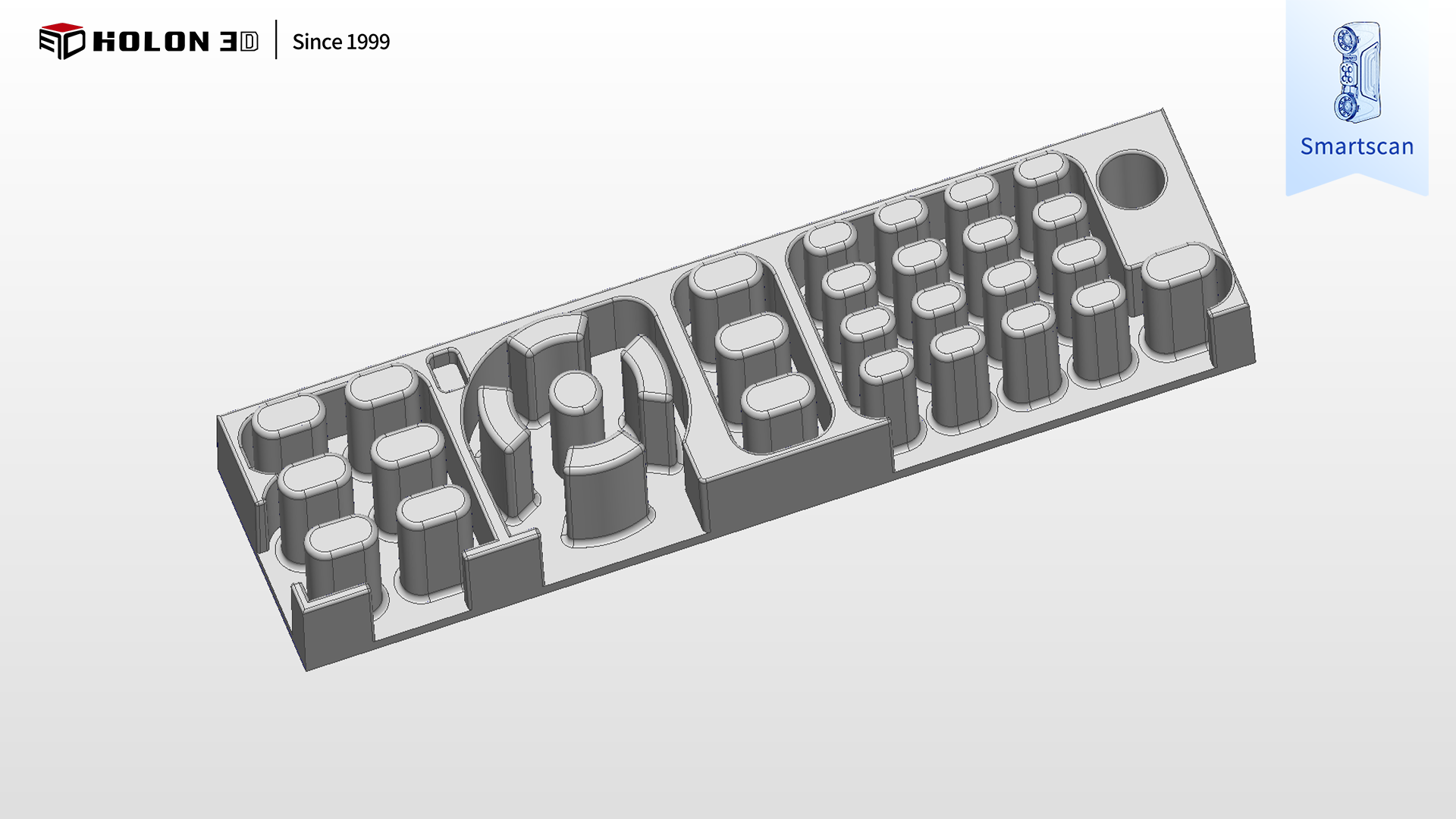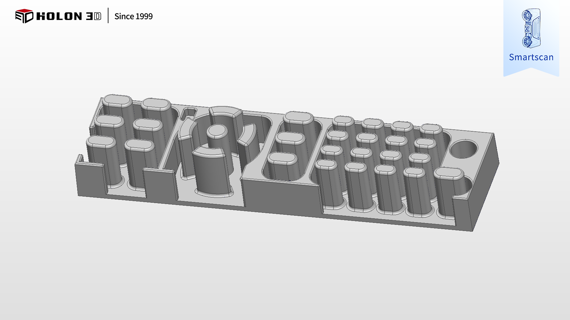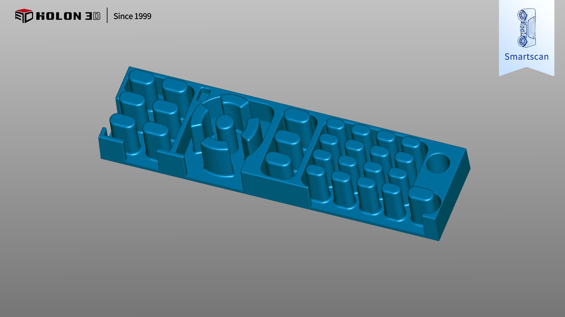 采用 HOLON3D Smart 49 掃描儀可針對性破解難題,其具備工業(yè)計量級精度,搭配全藍激光技術,能有效穿透黑色橡膠表面的信號吸收干擾,無需預處理即可精準采集數(shù)據;搭載四種掃描模式,可靈活適配按鍵細微紋路、凸起等不同特征,配合手持靈活操作實現(xiàn)全區(qū)域無死角掃描;高速無接觸測量避免橡膠材質變形損傷,各類環(huán)境下僅需粘貼少量標志點即可穩(wěn)定輸出高質量數(shù)據,掃描數(shù)據可直接導入逆向建模軟件生成生產用 CAD 模型,完全契合客戶需求,為按鍵復刻生產提供可靠數(shù)據支撐。