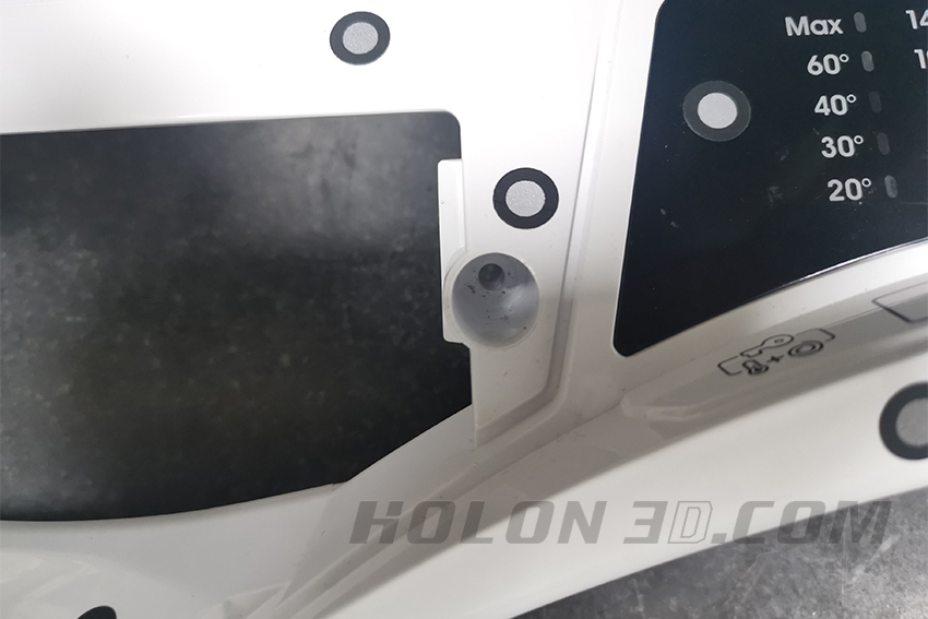 洗衣機(jī)控制面板有多個操作按鈕,表面按鈕孔位較多,客戶需要對工件的孔位尺寸檢測,傳統(tǒng)的測量方法,不能完整的獲取曲面數(shù)據(jù),控制面板需要與內(nèi)部零件相配合,對獲取的三維數(shù)據(jù)精度要求較高。