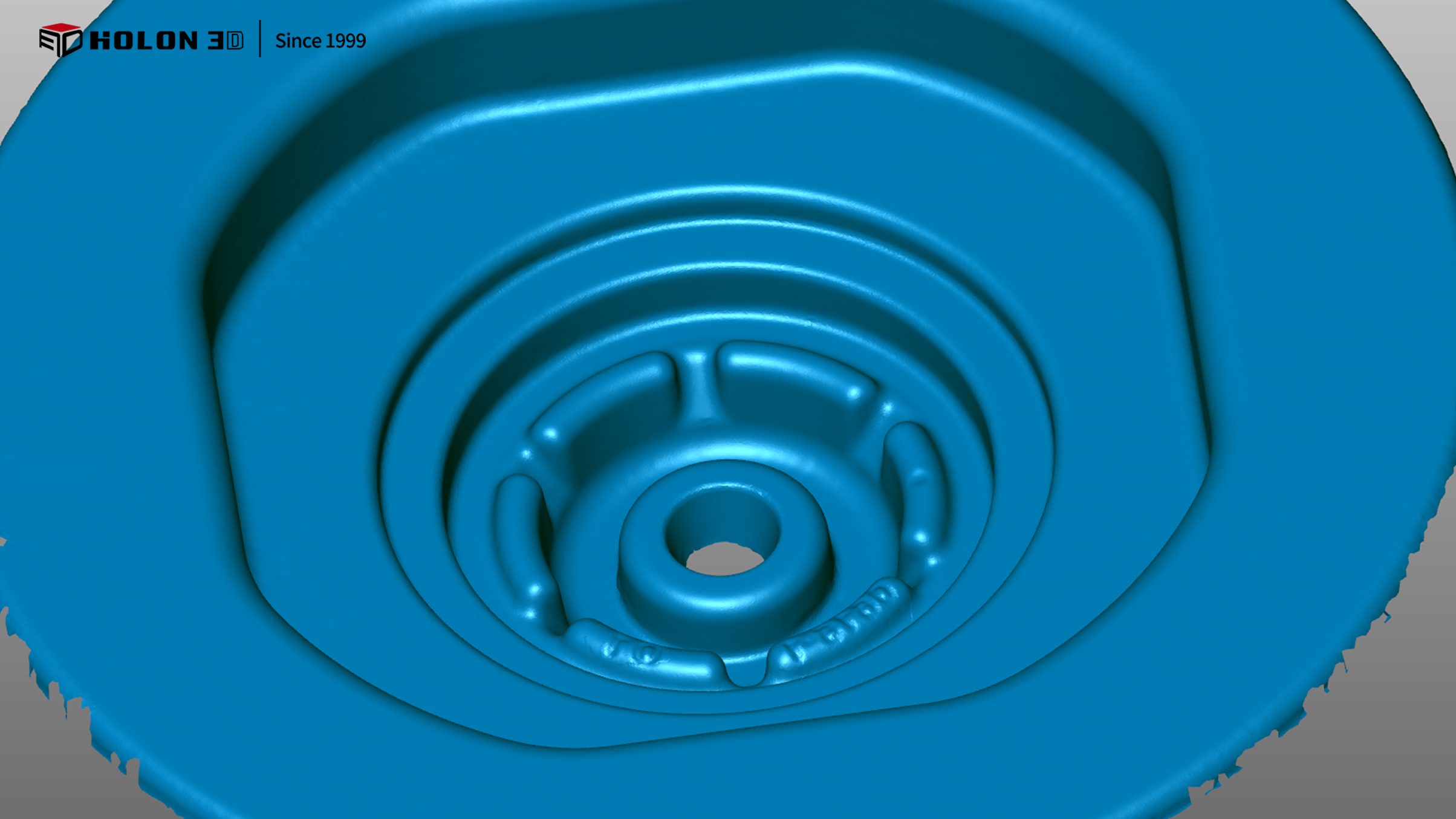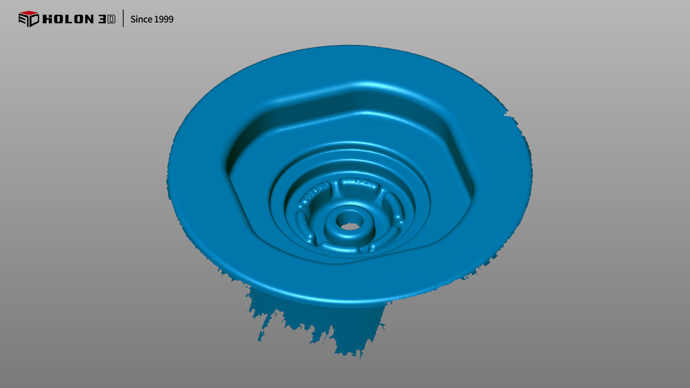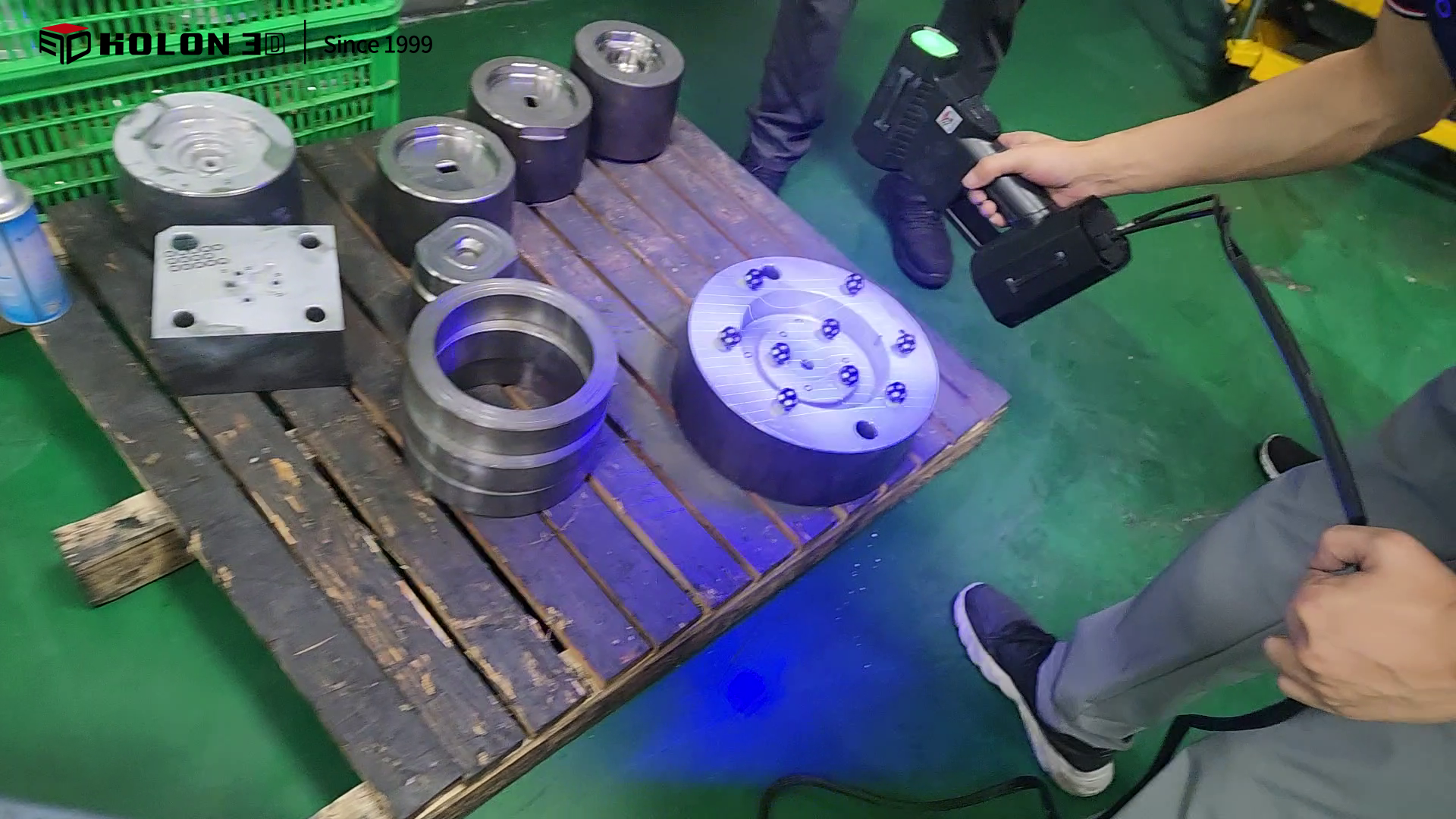 精鍛模具是精密鍛造生產(chǎn)的核心工具,其結(jié)構(gòu)精度直接影響鍛件的成型質(zhì)量??蛻?hù)需對(duì)該精鍛模具進(jìn)行三維數(shù)據(jù)采集,通過(guò)與原始數(shù)模對(duì)比開(kāi)展三維檢測(cè),以評(píng)估模具的制造精度與磨損狀況。但模具表面光滑且存在一定反光,傳統(tǒng)測(cè)量方式難以滿(mǎn)足掃描速度與精度的高要求,因此選擇 HOLON 3D Model 49 手持式三維掃描儀,為模具質(zhì)量檢測(cè)與生產(chǎn)工藝優(yōu)化提供精準(zhǔn)數(shù)據(jù)支持。