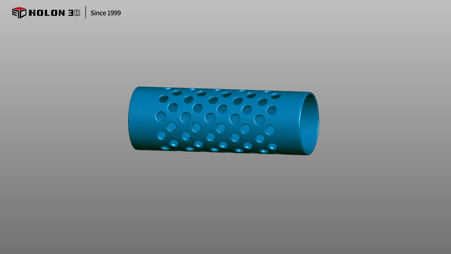 采用 HOLON 3D Smart 49 手持式全藍(lán)激光工業(yè)級(jí)三維掃描儀,可針對性解決激光切割不銹鋼空心管的掃描檢測難題。該掃描儀搭載全藍(lán)激光技術(shù),具備強(qiáng)大的抗反光能力,能有效抑制不銹鋼表面的強(qiáng)烈反光,清晰捕捉管體整體形態(tài)與每一個(gè)激光切割孔的邊緣輪廓,確保掃描精度完全匹配質(zhì)量檢測的嚴(yán)苛要求;高速掃描能力結(jié)合手持靈活操作,可一次性完成管體全表面數(shù)據(jù)采集,避免分段拼接誤差,完整還原工件整體結(jié)構(gòu),為管體形態(tài)檢測與全孔位偏差驗(yàn)證提供全面數(shù)據(jù)基礎(chǔ);非接觸式掃描方式避免與管體表面及孔位直接接觸,有效保護(hù)工件不受損傷,確保數(shù)據(jù)真實(shí)反映原始質(zhì)量狀態(tài);掃描儀適應(yīng)性強(qiáng),無需復(fù)雜的表面預(yù)處理,即可快速開展掃描作業(yè)。掃描后生成的三維數(shù)據(jù)完整、精準(zhǔn),可直接與標(biāo)準(zhǔn)模型對比分析管體質(zhì)量及孔位偏差是否合格,完全符合客戶檢測需求,為激光切割管的質(zhì)量管控與工藝優(yōu)化提供了高效且可靠的數(shù)字化保障。