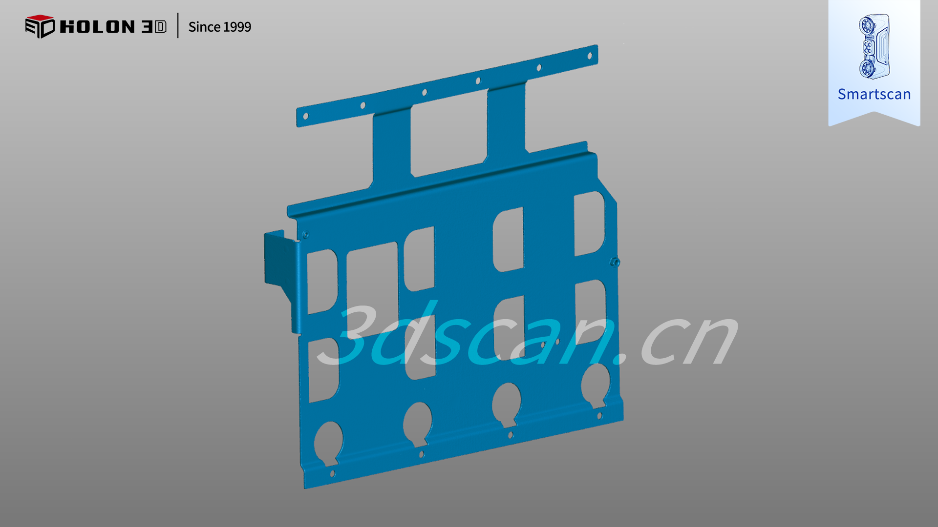 鋁鈑金件是各類設(shè)備的核心結(jié)構(gòu)部件,其外形輪廓、折彎精度及細(xì)節(jié)尺寸直接影響裝配適配性。客戶需通過三維掃描獲取鈑金件高精度完整數(shù)據(jù),與原始模型比對生成三維檢測色譜圖,量化誤差以判斷加工是否合格。因鈑金件表面反光且材質(zhì)較薄,客戶對掃描精度與細(xì)節(jié)還原度要求嚴(yán)苛,傳統(tǒng)測量方式難以滿足,故選擇 HOLON 3D Smart 49 手持式全藍(lán)激光工業(yè)級三維掃描儀提供數(shù)字化檢測方案。