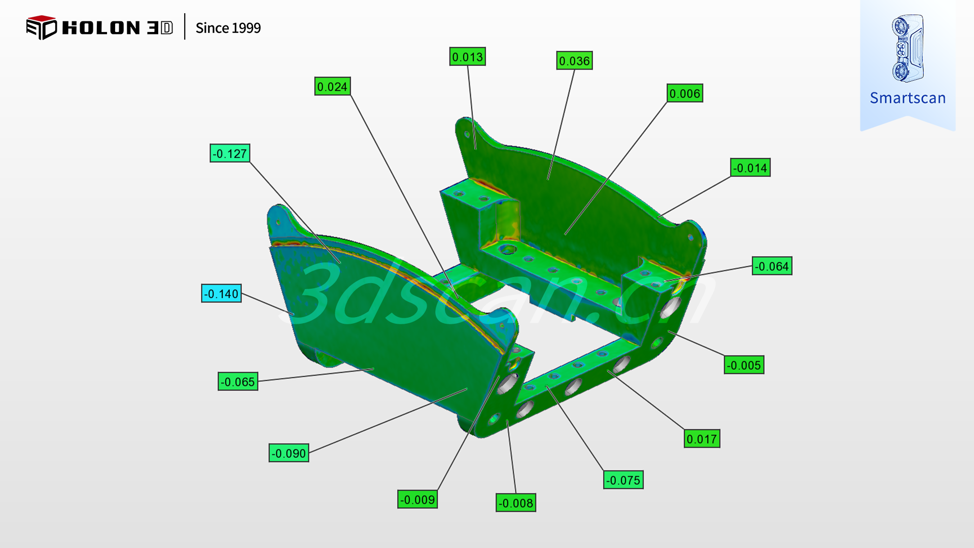 采用HOLON3D Smart 49掃描儀可針對性破解核心難題,其具備工業(yè)計量級精度,搭配全藍(lán)激光技術(shù),無需特殊預(yù)處理即可適配鋁制材質(zhì),穿透輕微反光干擾,精準(zhǔn)捕捉鑄件型腔、筋條等關(guān)鍵特征及表面細(xì)節(jié)數(shù)據(jù)。設(shè)備搭載四種掃描模式,可根據(jù)鑄件整體輪廓、細(xì)微結(jié)構(gòu)靈活切換,配合手持設(shè)計自由調(diào)整掃描角度,實現(xiàn)全區(qū)域無死角掃描。高速無接觸式測量避免工件損傷,不受場景約束,僅需粘貼少量標(biāo)志點即可穩(wěn)定輸出高密度點云數(shù)據(jù),掃描數(shù)據(jù)與原始模型比對生成清晰色譜圖,精準(zhǔn)量化誤差分布,科學(xué)判定鋁鑄件質(zhì)量合格性,完全契合客戶嚴(yán)苛需求,為鑄件質(zhì)量管控提供可靠支撐。