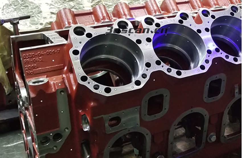 發(fā)動(dòng)機(jī)組成系統(tǒng)多,體型大且笨重,不方便移動(dòng),整體表面復(fù)雜不規(guī)則,孔位多,且孔槽大小不一,孔深,掃描難度增加,客戶要求掃描數(shù)據(jù)精度高。使用一般掃描儀的情況下,對(duì)于一些深孔,起伏面不易捕捉,精度準(zhǔn)確率低,在時(shí)間和人力方面也消耗的過(guò)多,不能滿足客戶的各方面要求。