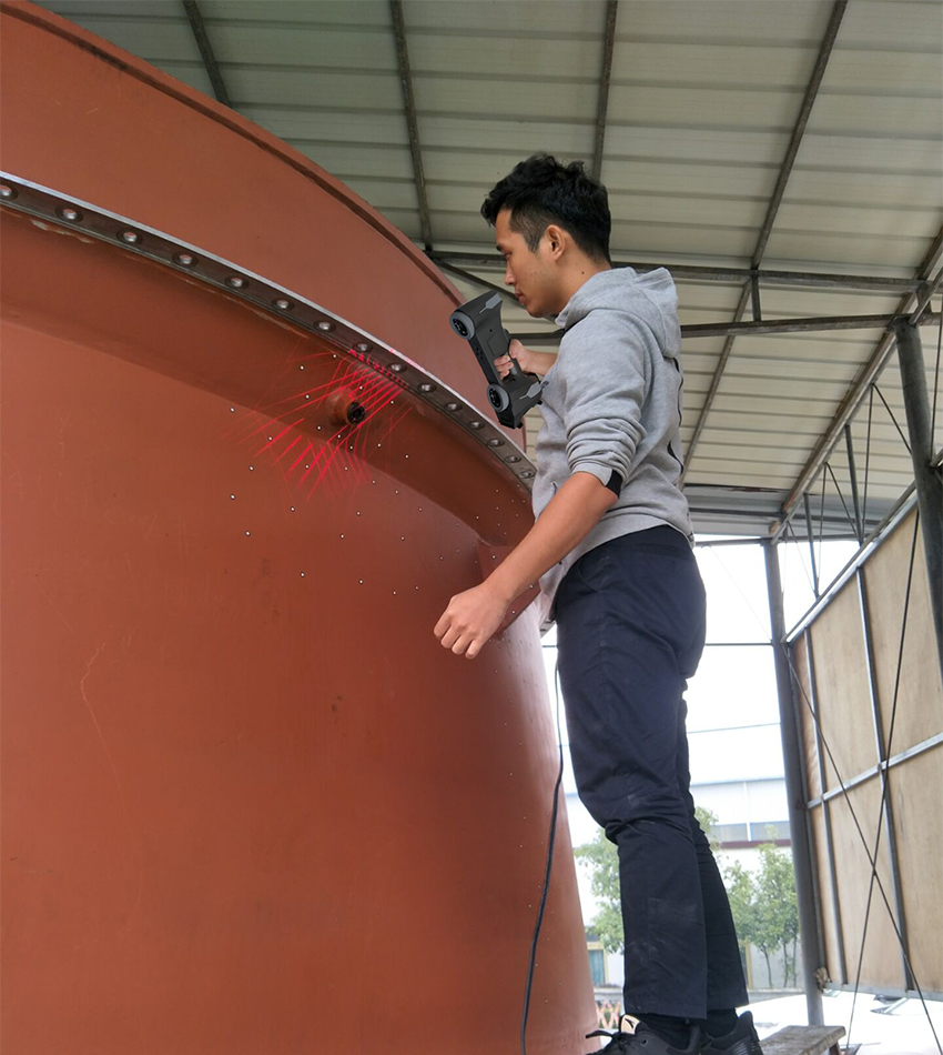 三維數(shù)字化適用于多種領(lǐng)域,是企業(yè)設(shè)計(jì)部門與制造部門提升開發(fā)和制造能力的重要輔助工具。在進(jìn)行三維掃描時(shí)由于被測物汽輪機(jī)艙體體型巨大,采用傳統(tǒng)的掃描方式進(jìn)行掃描,不僅效率很低,且掃描的數(shù)據(jù)量較少,曲面信息不夠完整,無法滿足企業(yè)對效率和品質(zhì)的更高要求。