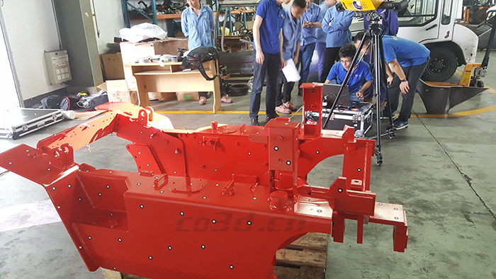 2、客戶需要對叉車車身鑄件進(jìn)行快速掃描,掃描數(shù)據(jù)要求精度高,用于叉車車身鑄件與原數(shù)模進(jìn)行比對三維檢測。